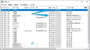 このソフト(NetEnum4)は何を参考にしているのか確認していませんが、既知のベンダーコードの場合は名前で表示してくれます。