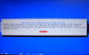 「複数のドライブが刺さっているから、どれをシステムドライブにするか選んでもらうよ、どれだか判らないならディスクを1本だけにして再起動からやり直すといいよ」的なメッセージみたいです。