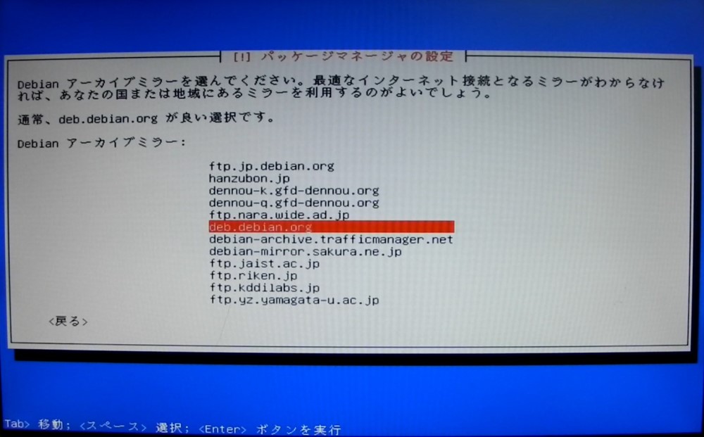 続いてアーカイブミラーのサーバー選択です。