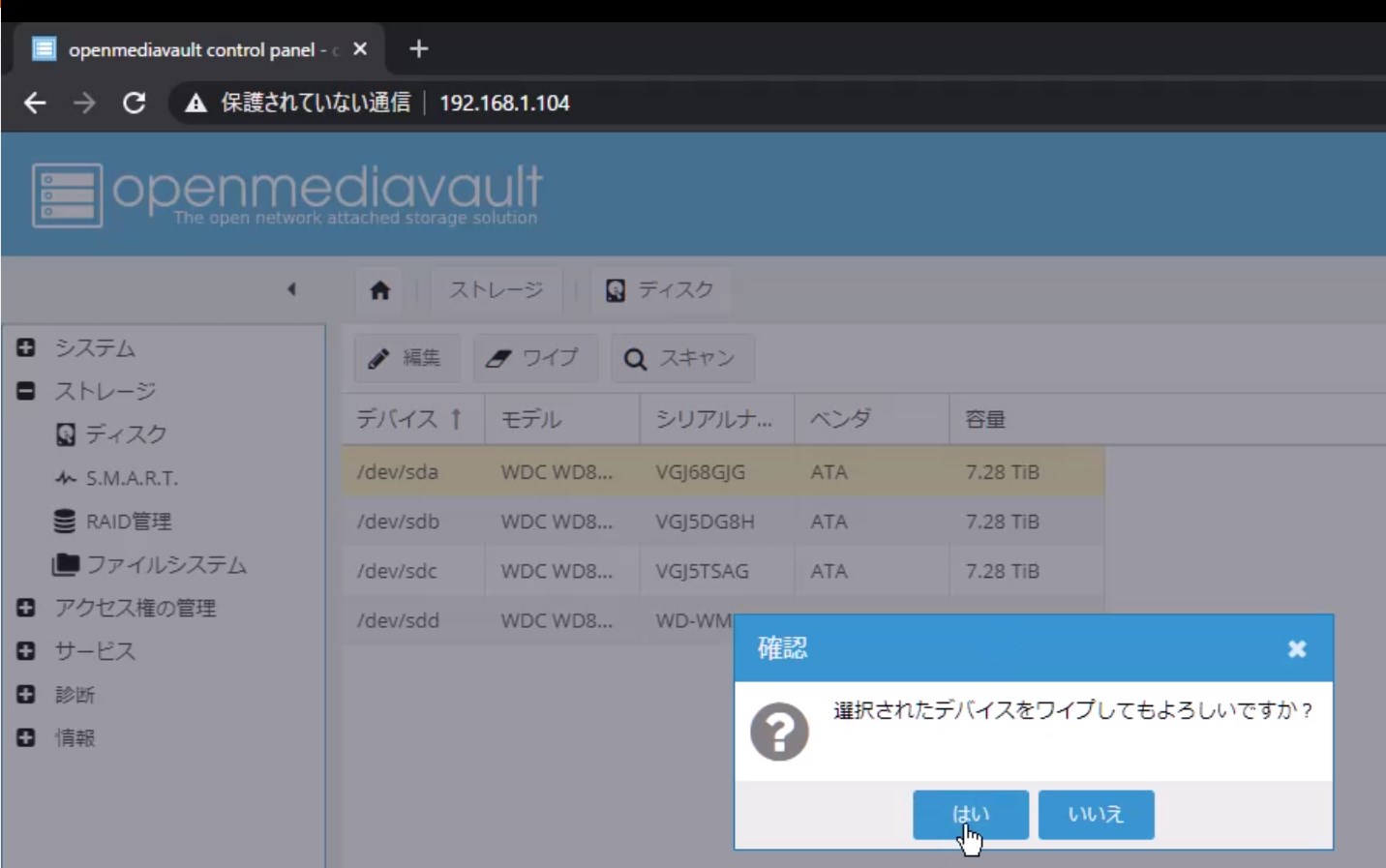無料のNAS用OS OpenMediaVault をインストールしてみた RAID5&SMB/CIFSファイル共有