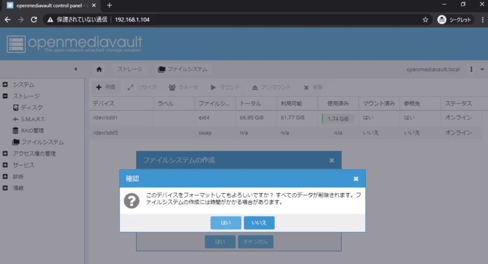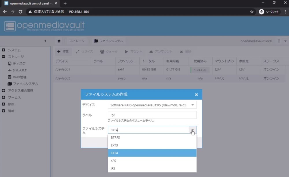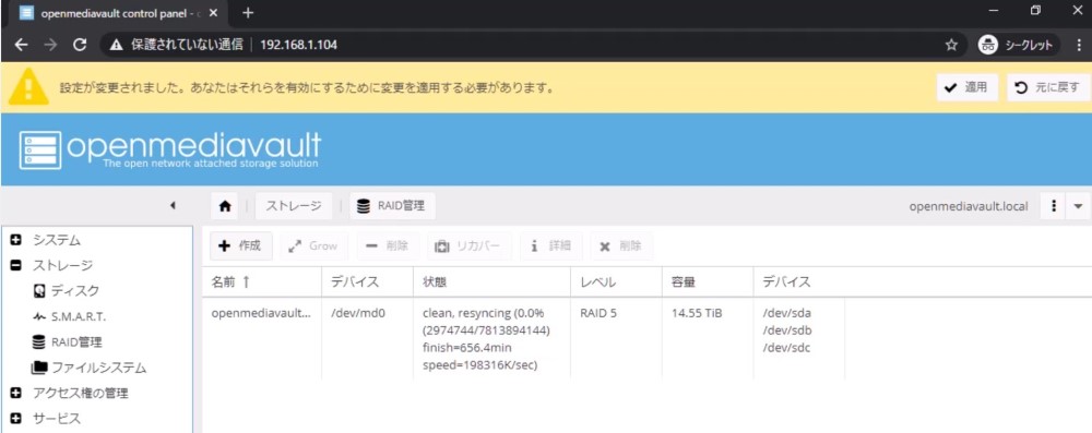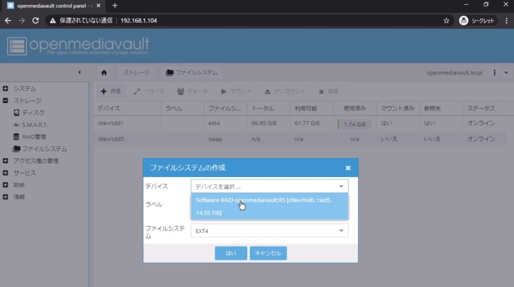 なぜOpenMediaVaultを選んだか気になる人がいるかもしれませんが、理由は単純で「直感的に構築できたから」です。^^;