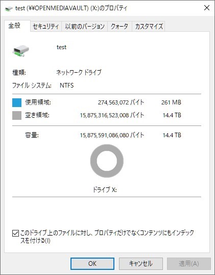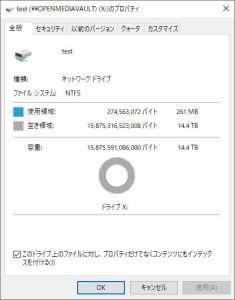 ドライブのプロパティを見てみると...14.4TBとなっています。